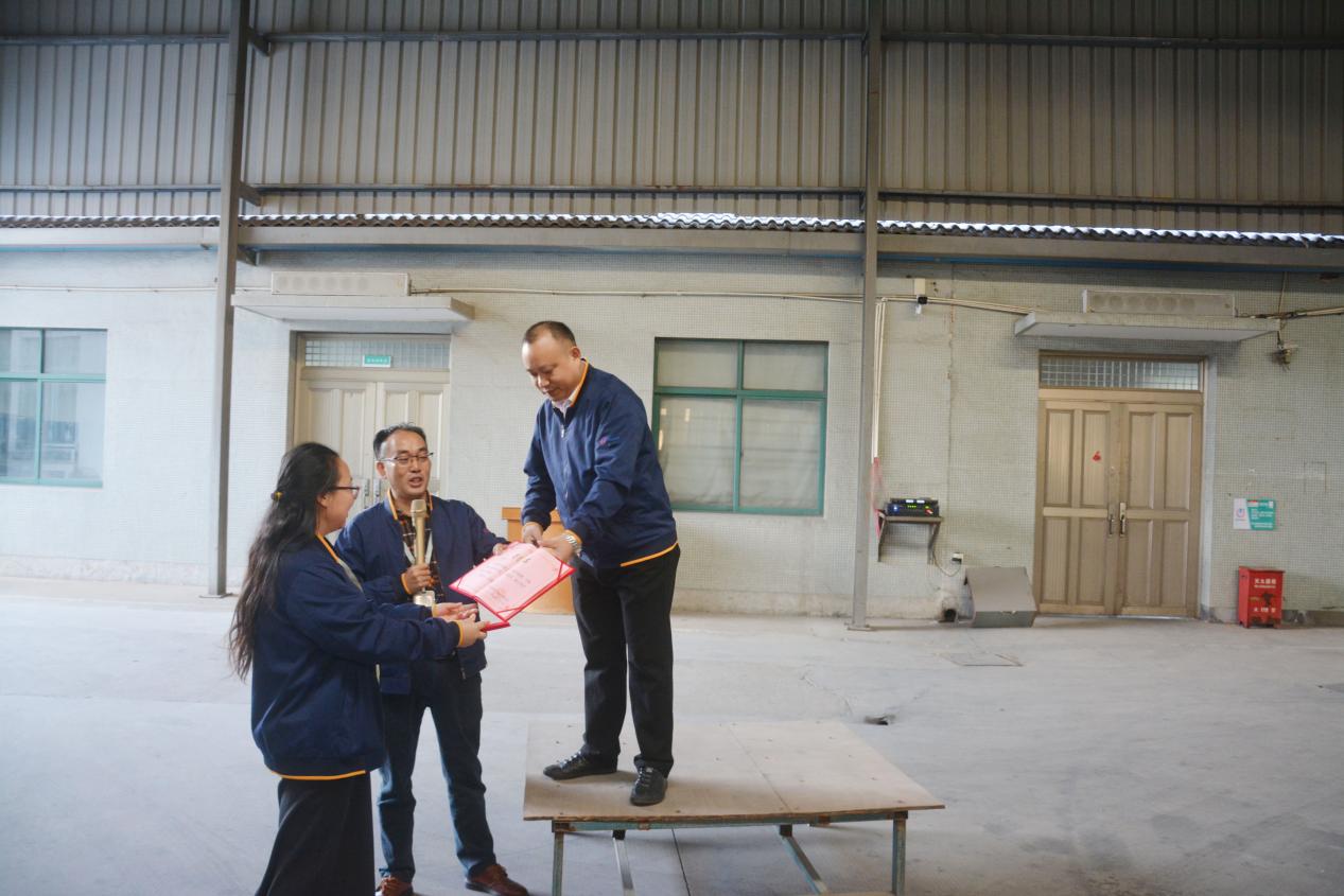 2022年10月24日,趁著周一早會(huì)時(shí)間,我們對模具部及五金模組頒發(fā)了獎(jiǎng)狀及獎(jiǎng)金,激勵(lì)各位佳人以模具部為榜樣,在自己精通熟悉的領(lǐng)域里,主動(dòng)挑起重?fù)?dān),精進(jìn)技藝,簡化流程,節(jié)約公司成本,開創(chuàng)屬于我們自己自創(chuàng)自主的品牌產(chǎn)品。只要有利公司發(fā)展前景,公司一定給予相應(yīng)嘉獎(jiǎng)。